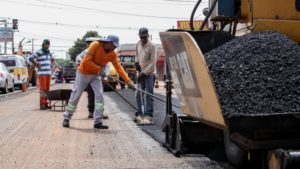 Após drenagem e remendos profundos, Bandeirantes começa a receber asfalto novo