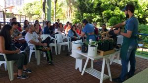 WhatsApp Image 2019-10-23 at 11.09.17 (2)Do Espaço Plantare, empresa que promoveu a oficina, em parceria com a Prefeitura de Campo Grande, Ana Cláudia Delgado Bastos Braga, explica que a oficina de compostagem doméstica objetiva resolver o problema do lixo na fonte.